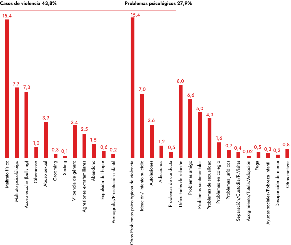 The ANAR Child and Teenage Support Phoneline/Chat offers an immediate response to any problem affecting those aged under 18: problematic relationships, different forms of violence, psychological and other problems, etc. Any child or youngster can call our number, free of charge and in confidence, and will find a psychologist at the other end of the line who will listen to them for as long as they need, offer them counselling as to their problem, and help them find a solution.